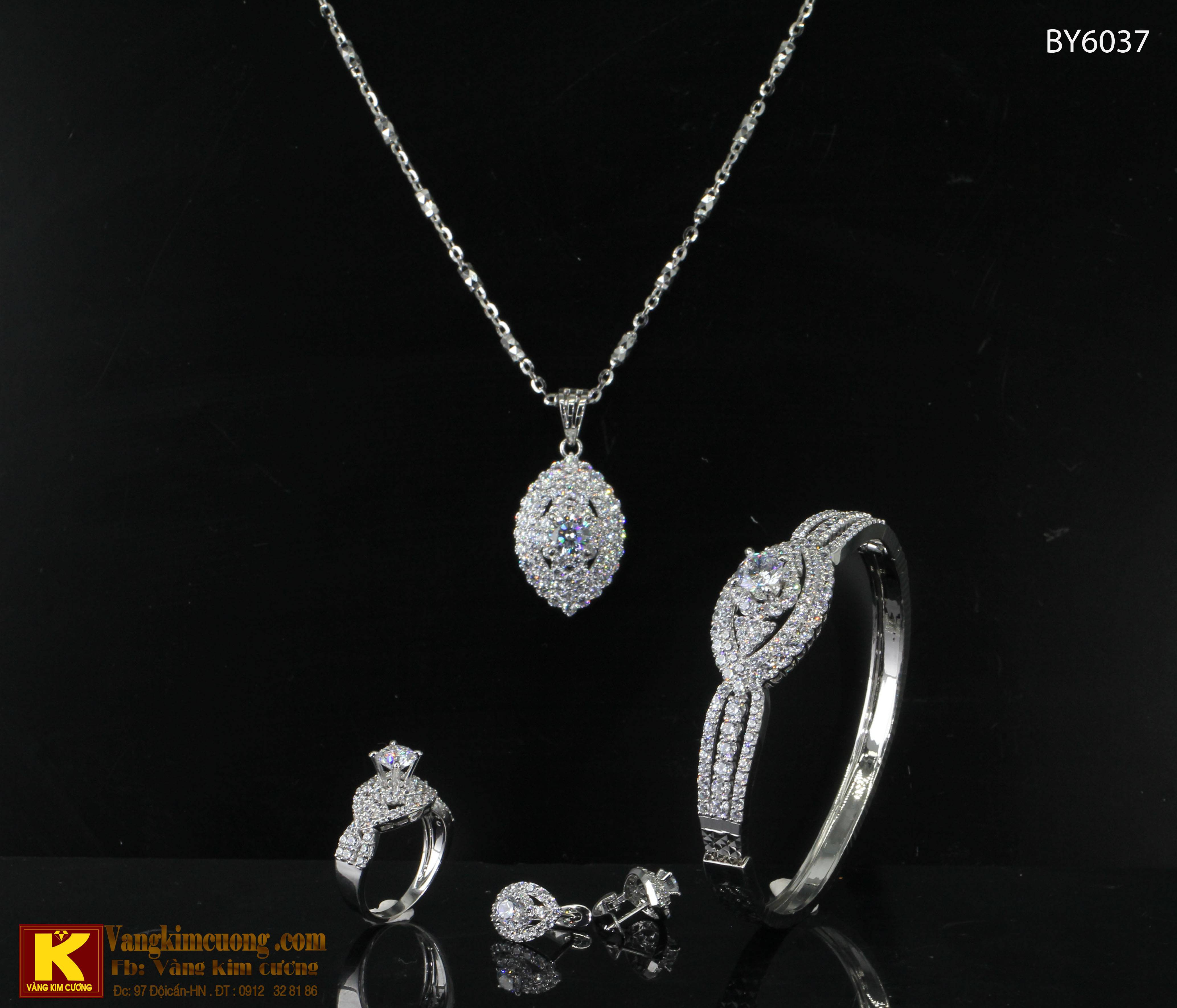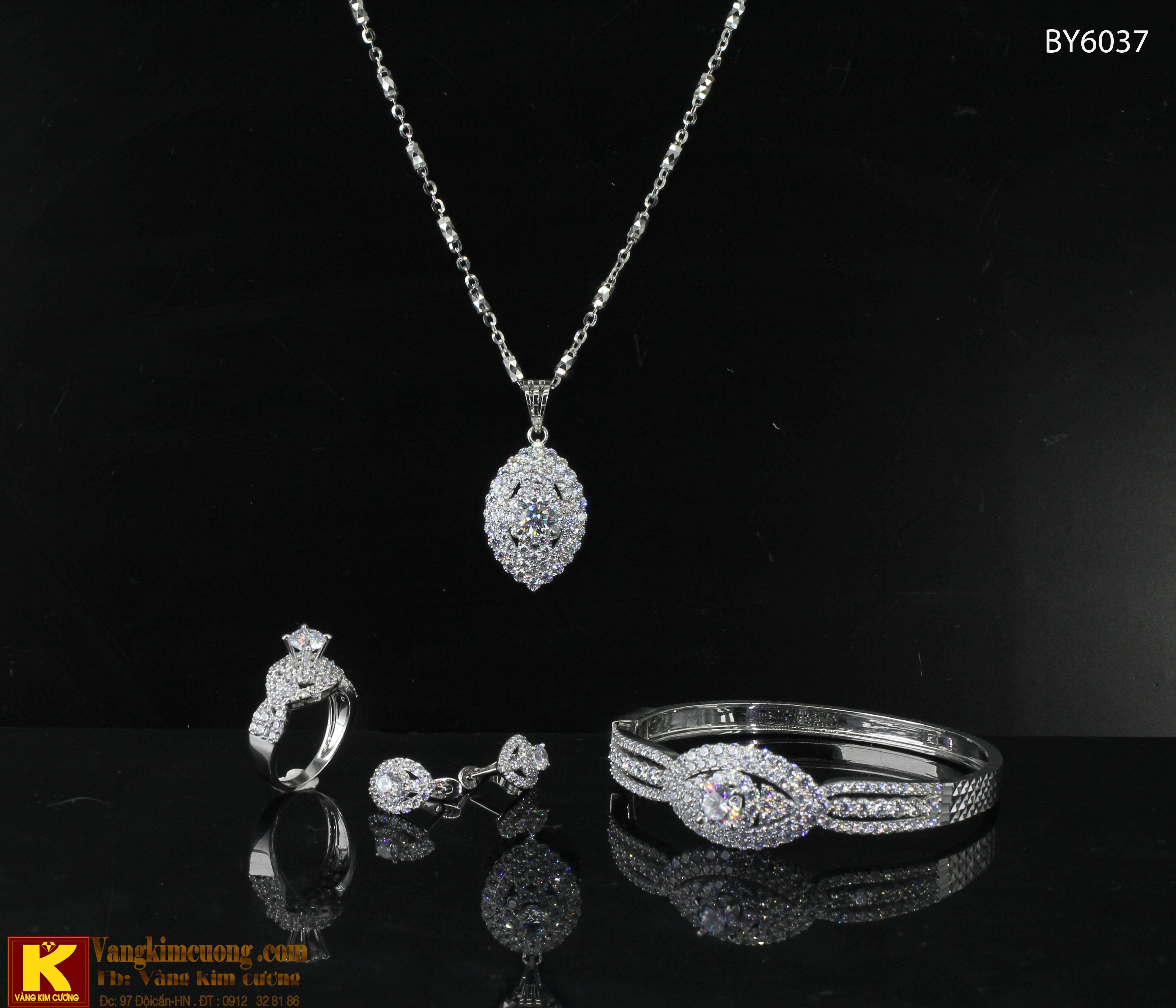 Bộ trang sức BY6037 vàng trắng cao cấp 18k nhập khẩu nguyên chiếc Italy, sản xuất trên dây truyền công nghệ hiện đại .Đá kim cương nhân tạo, thiết kế trẻ trung ,...
