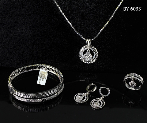 Bộ trang sức BY6033 vàng trắng cao cấp 18k nhập khẩu nguyên chiếc Italy, đá kim cương nhân tạo. Được sản xuất trên công nghệ dây truyền hiện đại bậc nhất . Màu sắc tinh tế nhã nhặn , phù hợp với mọi độ tuổi . Kiểu cách trẻ trung . Đặc biệt bộ trang sức này rất tôn lên được vẻ đẹp của người phụ nữ thành đạt , quý phái .