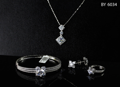 Bộ trang sức BY6034 vàng trắng cao cấp 16k nhập khẩu nguyên chiếc Italy, đá kim cương nhân tạo. Được sản xuất trên công nghệ dây truyền hiện đại bậc nhất . Màu sắc tinh tế nhã nhặn , phù hợp với mọi độ tuổi . Kiểu cách trẻ trung . Đặc biệt bộ trang sức này rất tôn lên được vẻ đẹp của người phụ nữ thành đạt , quý phái .