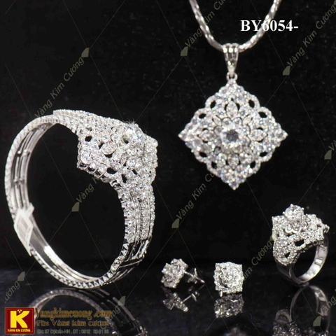 Bộ trang sức BY6054 vàng trắng cao cấp 18k nhập khẩu nguyên chiếc Italy, đá kim cương nhân tạo. Được sản xuất trên công nghệ dây truyền hiện đại bậc nhất . Màu sắc tinh tế nhã nhặn , phù hợp với mọi độ tuổi . Kiểu cách trẻ trung . Đặc biệt bộ trang sức này rất tôn lên được vẻ đẹp của người phụ nữ thành đạt , quý phái .