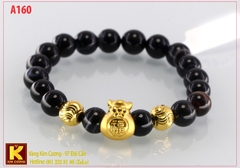 Mẫu A159 gồm Charm xế vàng, thượng lộ bình an, 4 charm cầu may mắn vàng ta 24k kết hợp với vòng đá mã lão thiên nhiên phong thủy hợp mệnh mang lại may mắn, tài lộc, sức khỏe cho chủ...