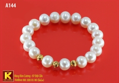 Mẫu A144 là 3 Charm vàng 24k kết hợp với vòng ngọc trai nuôi hợp mệnh mang lại may mắn, tài lộc, sức khỏe cho chủ nhân sở hữu