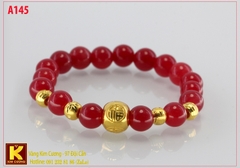 Mẫu A153 là 3 Charm cầu may mắn vàng ta 24k kết hợp với vòng đá quý mã não đỏ phong thủy hợp mệnh mang lại may mắn, tài lộc, sức khỏe cho chủ nhân sở hữu.