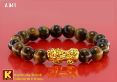 Vòng A041 là Charm vàng ta 24k tì hưu chiêu tài tích lộc. Vòng đá quý phong thủy mắt hổ nâu vàng thiên nhiên. Hợp mệnh Kim, mệnh Thổ, mệnh Hỏa đem lại tài lộc, may mắn cho người hợp mệnh:...