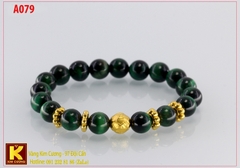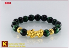 Vòng A048 là Charm vàng ta 24k tì hưu chiêu tài tích lộc cỡ lớn, 2 charm vòng cầu may mắn. Vòng đá quý phong thủy mắt hổ xanh lục thiên nhiên. Hợp mệnh Mộc, mệnh Hỏa đem lại tài lộc,...