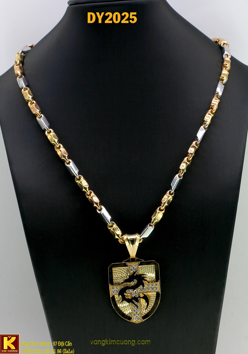 Mẫu dây chuyền nam DY2025 là vàng cao cấp 18k nhập khẩu Italy, dây có giá 40 triệu, mặt có giá 15,9 triệu, dây chuyền làm bạn trở nên mạnh mẽ, dây chuyền luôn bảo đảm sự chắc chắn, thể hiện cá tính của người đeo, chất lượng tinh xảo. Dây chuyền italy luôn sáng đẹp làm cho nam giới sang trọng hơn. Ngoài ra, sở hữu dây chuyền có công dụng hộ mệnh rất tốt.