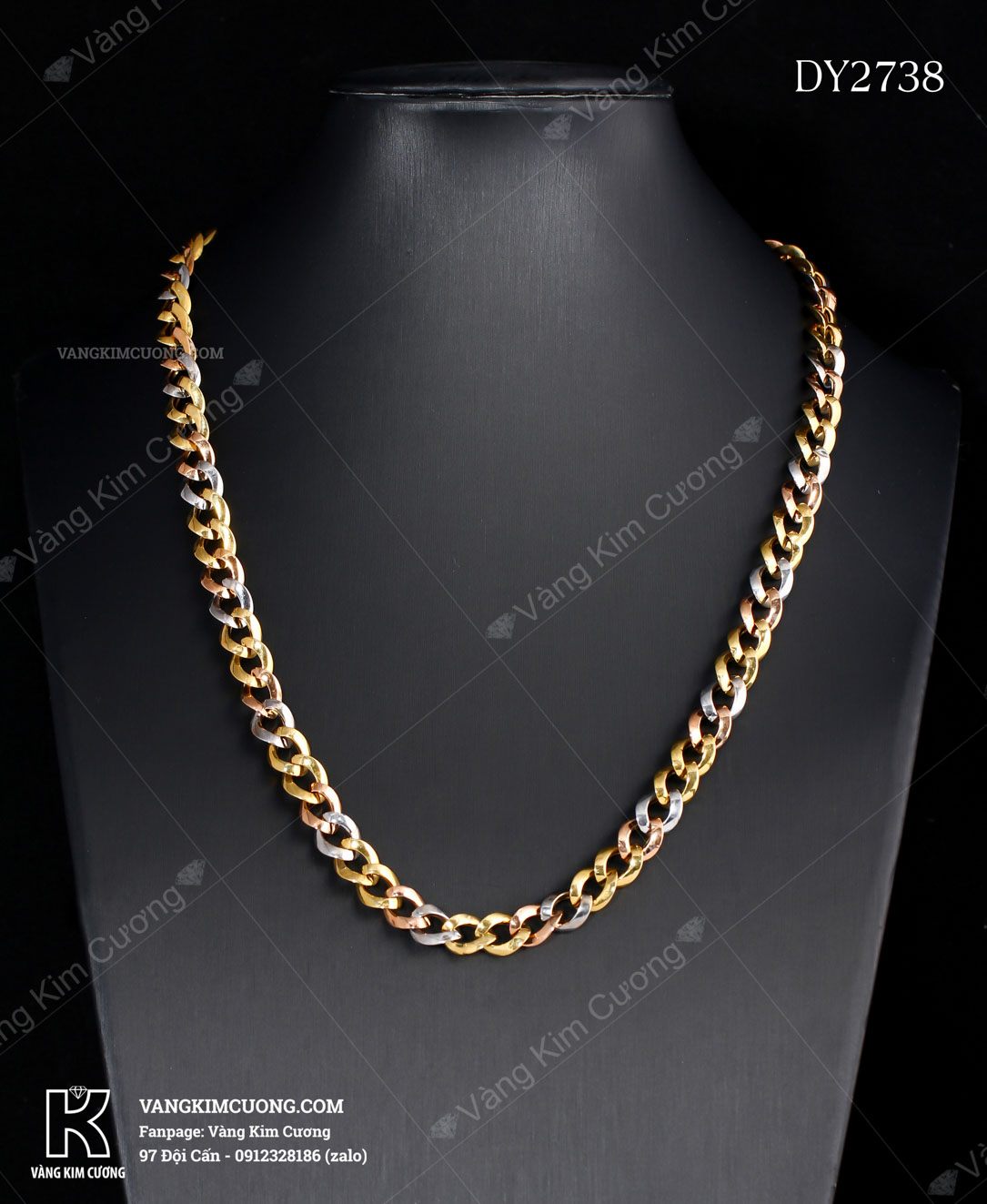 Dây chuyền vàng cao cấp 18k sang trọng quý phái . Sản phẩm sở hữu một thiết kế tinh tế sang trọng ,kiểu dáng hiện đại trẻ trung tạo nên nét năng động khỏe khoắn cho người sở hữu, với những mắt xích nối liền với nhau cực kì tinh tế và có cảm giác rất mềm khi bắt vào ánh mắt người đối diện , nó không bị thô hay góc cạnh kém sự tinh tế mà nó sắc nét từng chi tiết dù là nhỏ nhất . Màu sắc thì trong sáng , tự nhiênpha lẫn giữa cổ điện và hiện đại