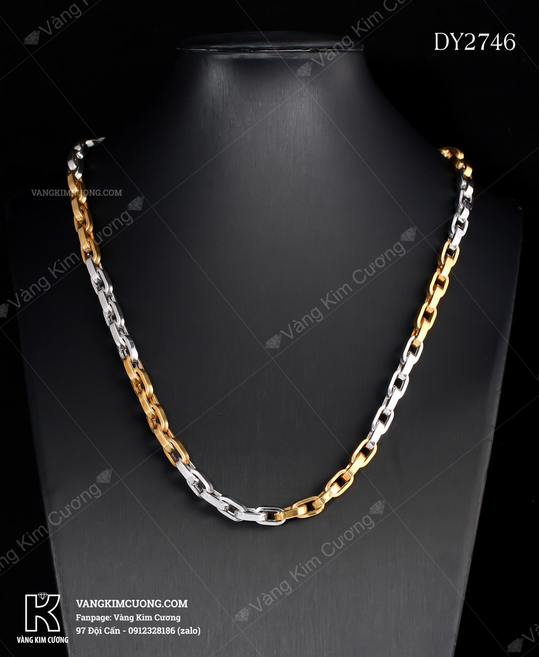 Dây chuyền vàng 18k italy nhập khẩu nguyên chiếc mã DY2746 sang trọng quý phái . Sản phẩm sở hữu một thiết kế tinh tế sang trọng ,kiểu dáng hiện đại trẻ trung tạo nên nét năng động khỏe khoắn cho người sở hữu, với những mắt xích nối liền với nhau cực kì tinh tế và có cảm giác rất mềm khi bắt vào ánh mắt người đối diện , nó không bị thô hay góc cạnh kém sự tinh tế mà nó sắc nét từng chi tiết dù là nhỏ nhất . Màu sắc thì trong sáng , tự nhiênpha lẫn giữa cổ điện và hiện đại