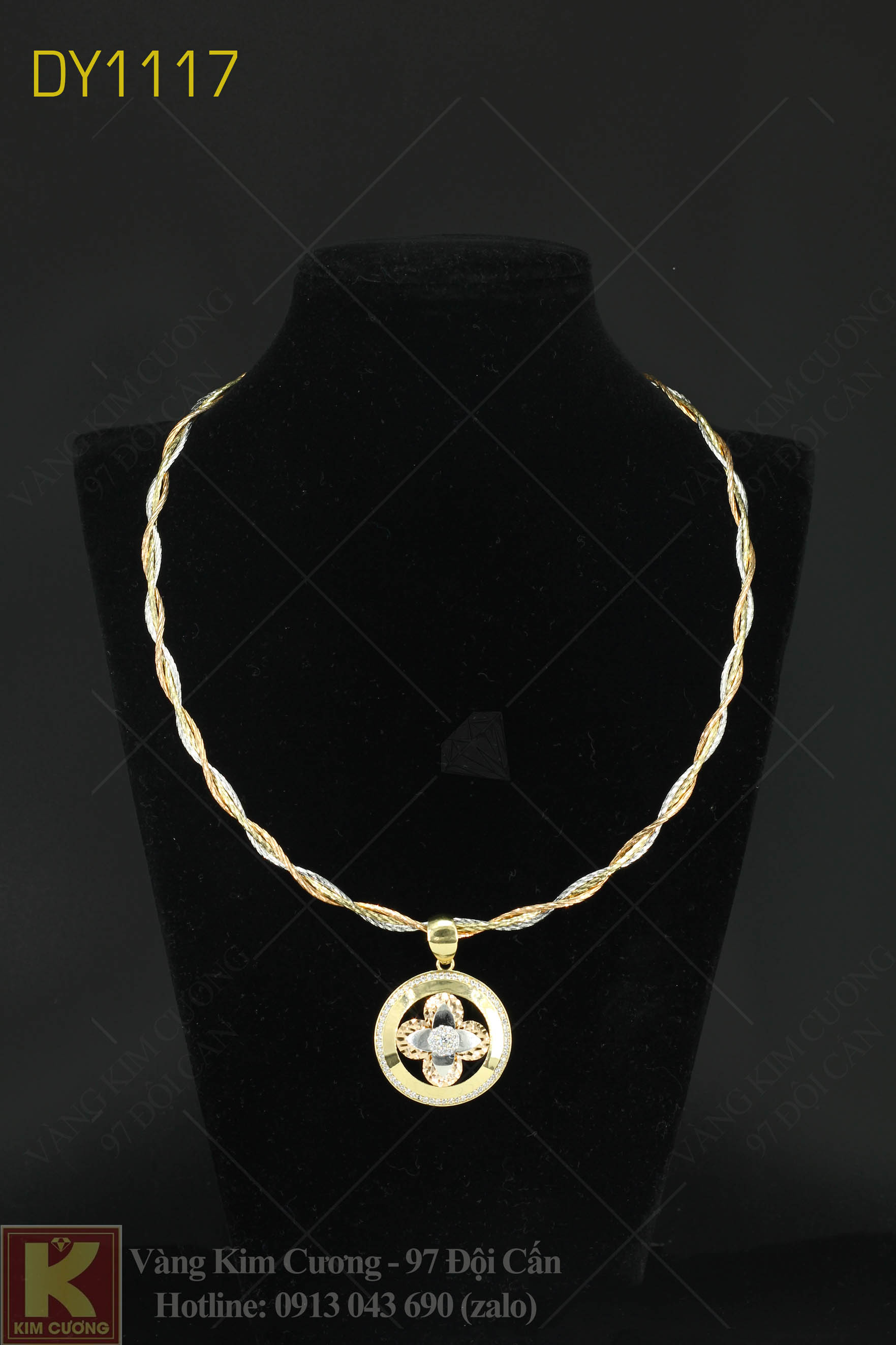 Dây chuyền nữ vàng tây 18k italy mã DY1117: dây là vàng cao cấp 18k nhập khẩu nguyên chiếc Italy nguyên chiếc có giá 19,39 triệu, mặt có giá 7,9 triệu.