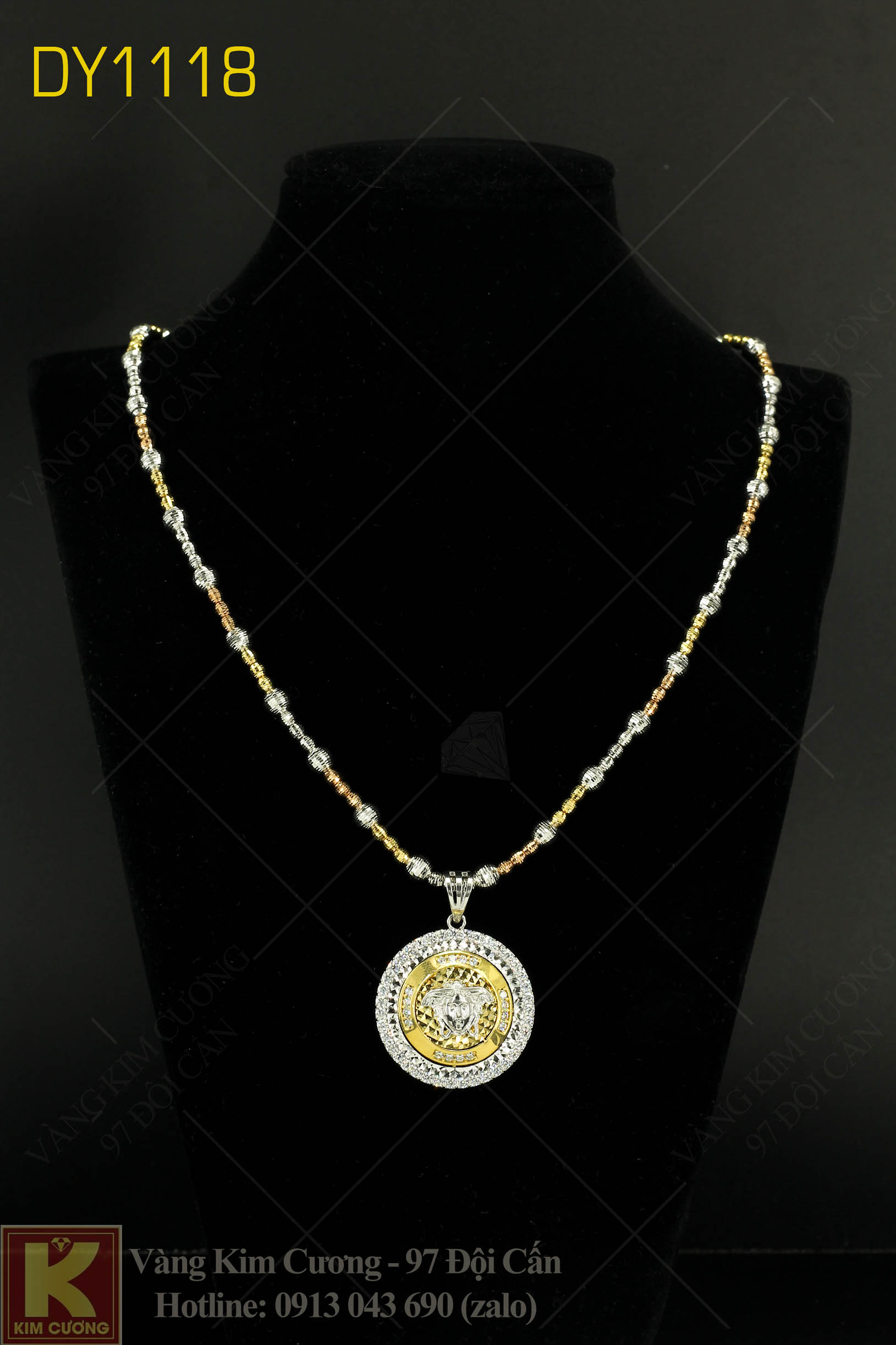 Dây chuyền nữ vàng tây 18k italy mã DY1118: dây là vàng cao cấp 18k nhập khẩu nguyên chiếc Italy có giá 23,94 triệu, mặt có giá 10,61 triệu.