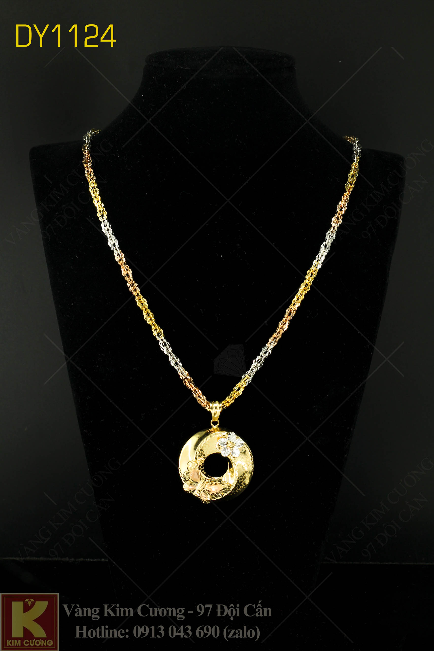 Dây chuyền nữ vàng tây 18k italy mã DY1124: dây là vàng cao cấp 18k nhập khẩu nguyên chiếc Italy có giá 21,59 triệu, mặt có giá 9,42 triệu.