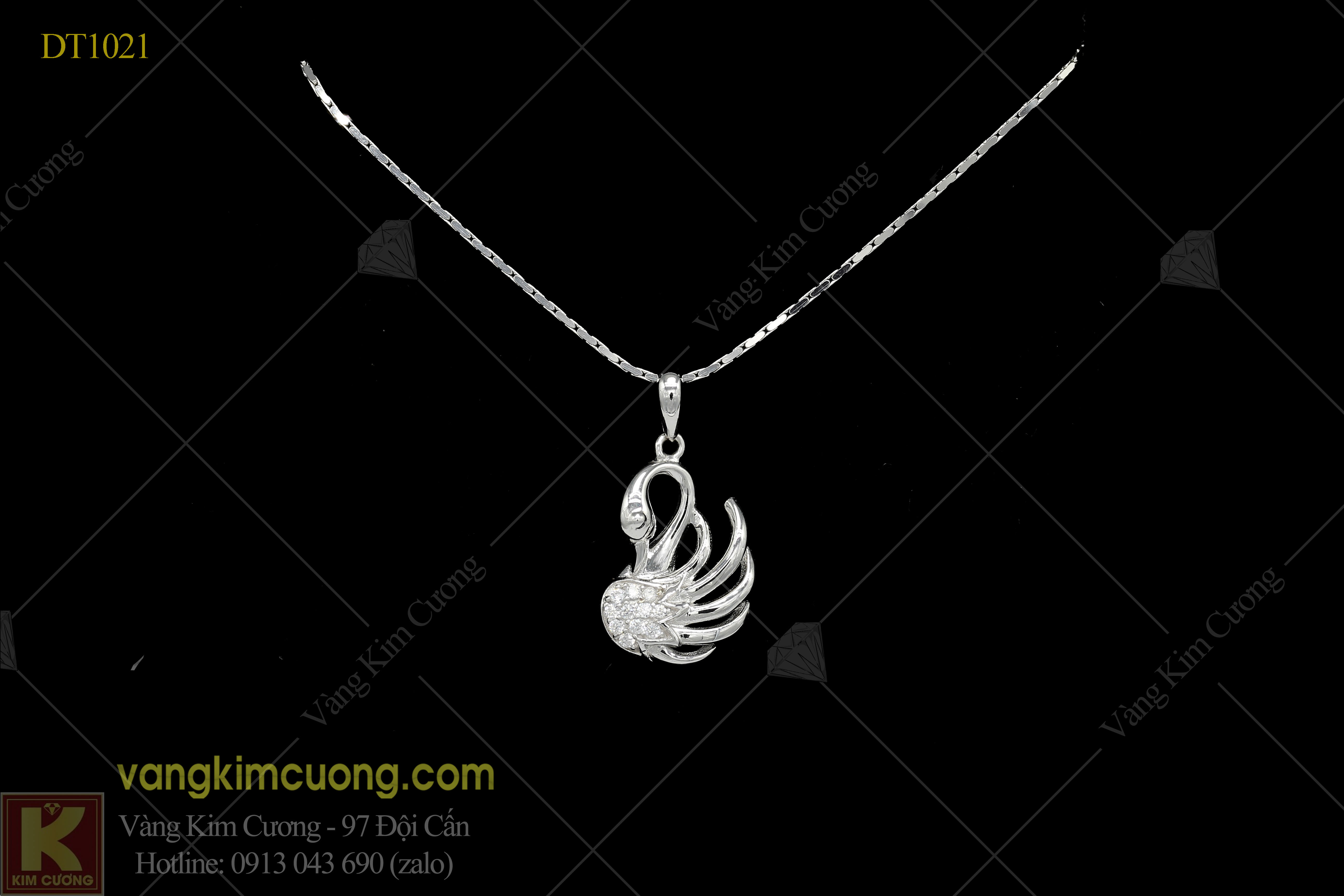 Mẫu DTMT1021: dây là vàng trắng cao cấp 18k giá 3 triệu, mặt là vàng trắng cao cấp 18k nhập khẩu, mặt đá kim cương nhân tạo giá 2,30 triệu.