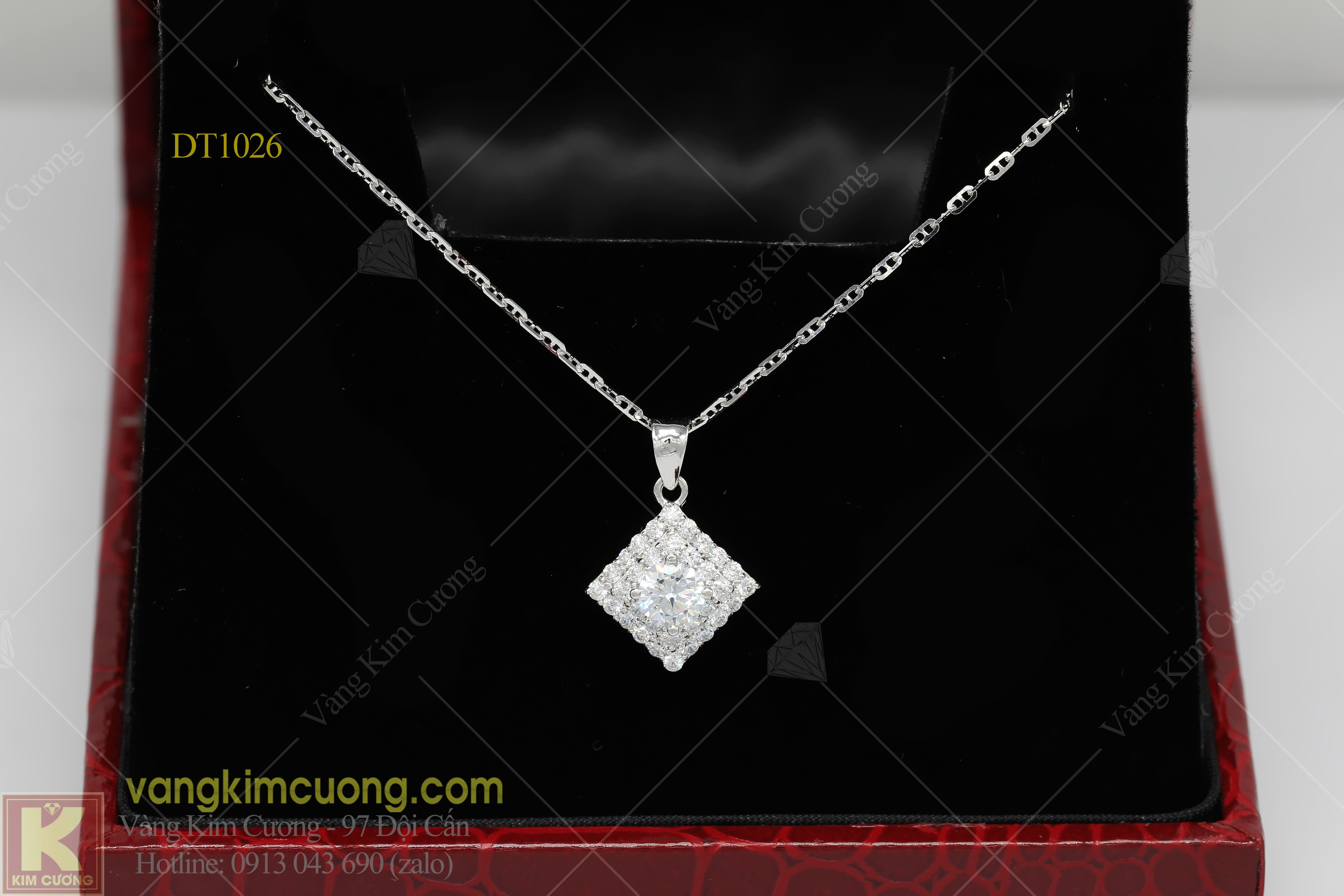 Mẫu DT1026: dây chuyền là vàng trắng cao cấp 18k nhập khẩu nguyên chiếc Italy giá 3,2 triệu, mặt dây là vàng trắng cao cấp 18k nhập khẩu nguyên chiếc Italy giá 2,32 triệu.