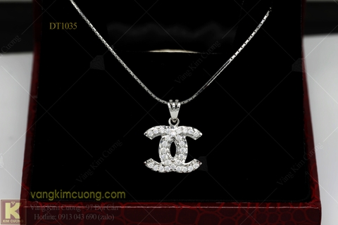 Mẫu DTMT1035: dây là vàng trắng cao cấp 18k giá 3 triệu, mặt là vàng trắng cao cấp 18k nhập khẩu, mặt đá kim cương nhân tạo giá 3,60 triệu.