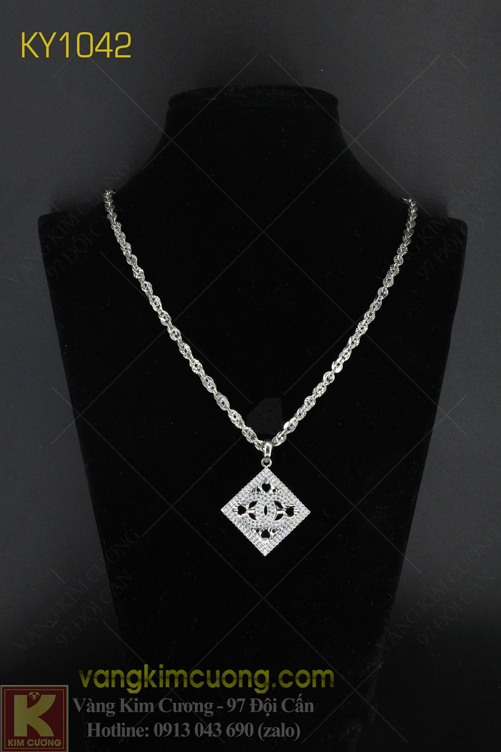 Mẫu KY1042 là vàng cao cấp 18k nhập khẩu nguyên chiếc Italy, kiềng có giá 14,8 triệu, mặt có giá 7,8 triệu.