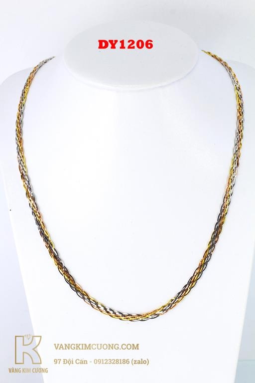 Dây chuyền nữ vàng 18k mã DY1206 là vàng cao cấp 18k nhập khẩu nguyên chiếc Italy, được thiết kế với kiểu dáng thanh tao nhẹ nhàng , sự kết hợp màu sắc rất sáng và đa dạng bắt mắt càng tôn lên được sự tinh tế nhã nhặn của màu sắc, sự tinh tế của mỗi thiết kế với những hoạ tiết trong mỗi mắt xích liên kết với nhau rất tỉ mỉ và sắc nét