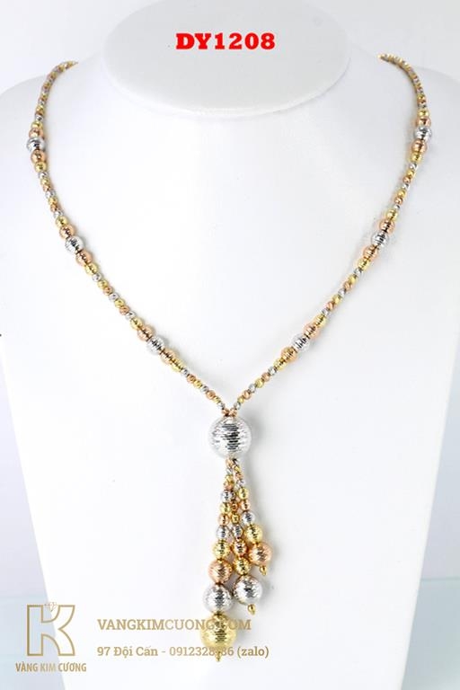 Dây chuyền nữ vàng ba màu 18k mã DY1208 là vàng cao cấp 18k nhập khẩu nguyên chiếc Italy, được thiết kế với kiểu dáng thanh tao nhẹ nhàng , sự kết hợp màu sắc rất sáng và đa dạng bắt mắt càng tôn lên được sự tinh tế nhã nhặn của màu sắc, sự tinh tế của mỗ...