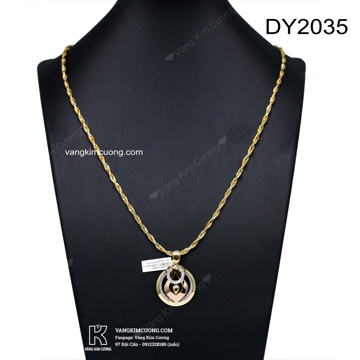 Mặt dây chuyền nữ vàng tây mã DY2035 là vàng màu cao cấp 18k nhập khẩu nguyên chiếc Italy, được thiết kế với kiểu dáng thanh tao nhẹ nhàng , sự kết hợp màu sắc ba màu bắt mắt càng tôn lên được sự tinh tế nhã nhặn của màu sắc, sự tinh tế của mỗi thiết kế với những hoạ tiết trong mỗi mắt xích liên kết với nhau rất tỉ mỉ và sắc nét