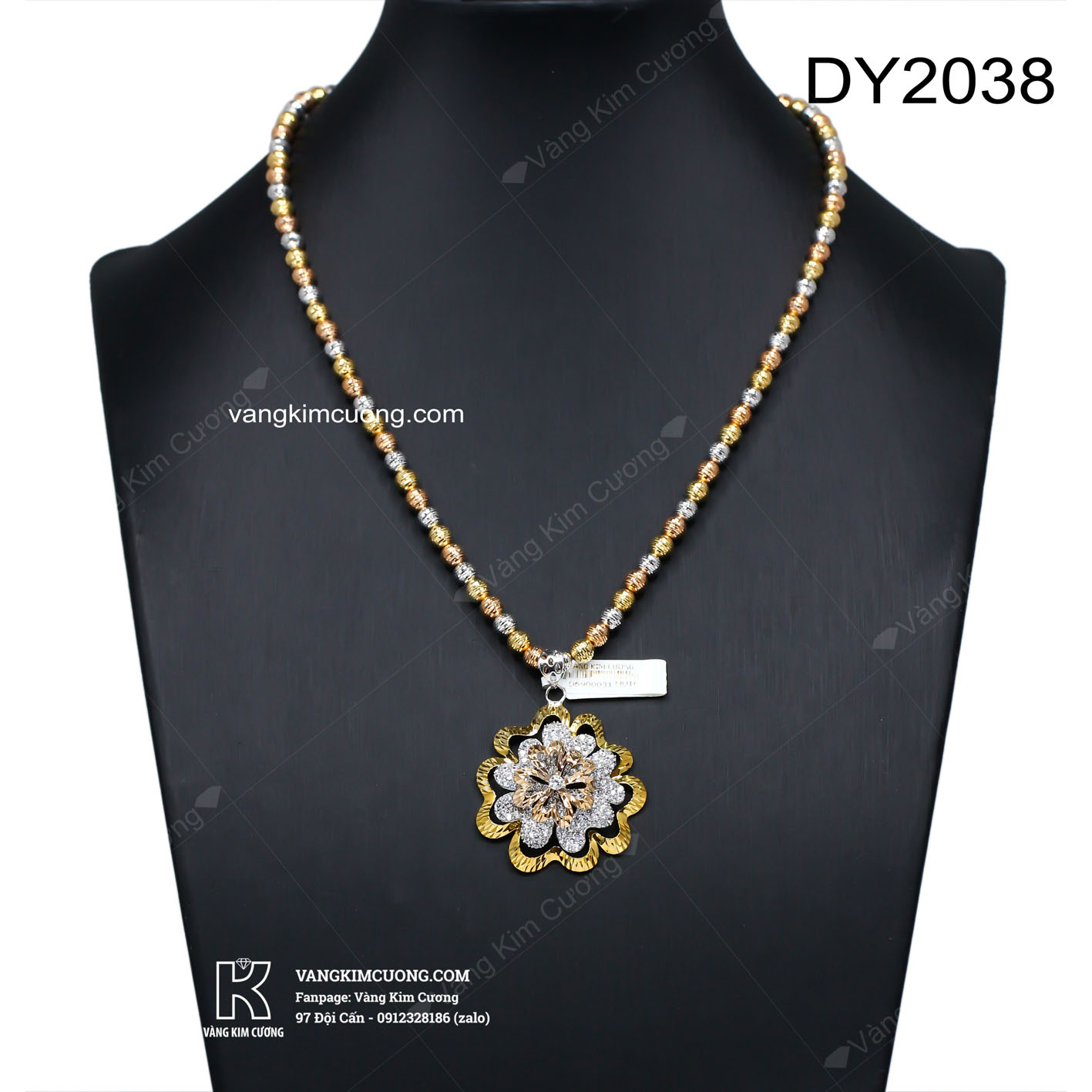 Mặt dây chuyền nữ vàng tây mã DY2038 là vàng ba màu cao cấp 18k nhập khẩu nguyên chiếc Italy, được thiết kế với kiểu dáng thanh tao nhẹ nhàng , sự kết hợp màu sắc ba màu bắt mắt càng tôn lên được sự tinh tế nhã nhặn của màu sắc, sự tinh tế của mỗi thiết kế với những hoạ tiết trong mỗi mắt xích liên kết với nhau rất tỉ mỉ và sắc nét