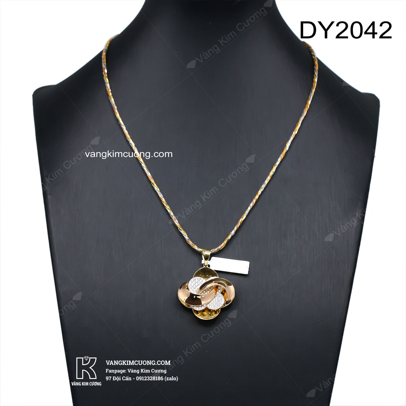 Mặt dây chuyền nữ vàng tây mã DY2042 là vàng ba màu cao cấp 18k nhập khẩu nguyên chiếc Italy, được thiết kế với kiểu dáng thanh tao nhẹ nhàng , sự kết hợp màu sắc ba màu bắt mắt càng tôn lên được sự tinh tế nhã nhặn của màu sắc, sự tinh tế của mỗi thiết kế với những hoạ tiết trong mỗi mắt xích liên kết với nhau rất tỉ mỉ và sắc nét