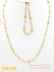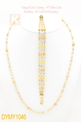 Dây chuyền nữ vàng tây mã DYMY1044 bao gồm dây 20 triệu, khuyên tai 6,5 triệu, nhẫn 5 triệu, lắc 8.5 triệu.