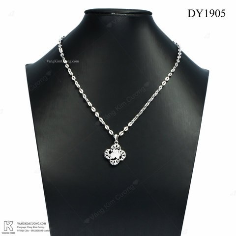 Dây chuyền vàng trắng cao cấp DY1905 vàng cao cấp 18k, nhập khẩu nguyên chiếc tại italy, với kểu dáng dây xoắn tết cùng sư kết hợp với mặt dây hình hoa 3D xinh độc đáo nghệ thuật lạm kim cương nhân tạo làm điểm nhấn giúp gương mặt bạn nổi bật, tinh tế, sang trọng, lôi cuốn và đầy cuốn hút