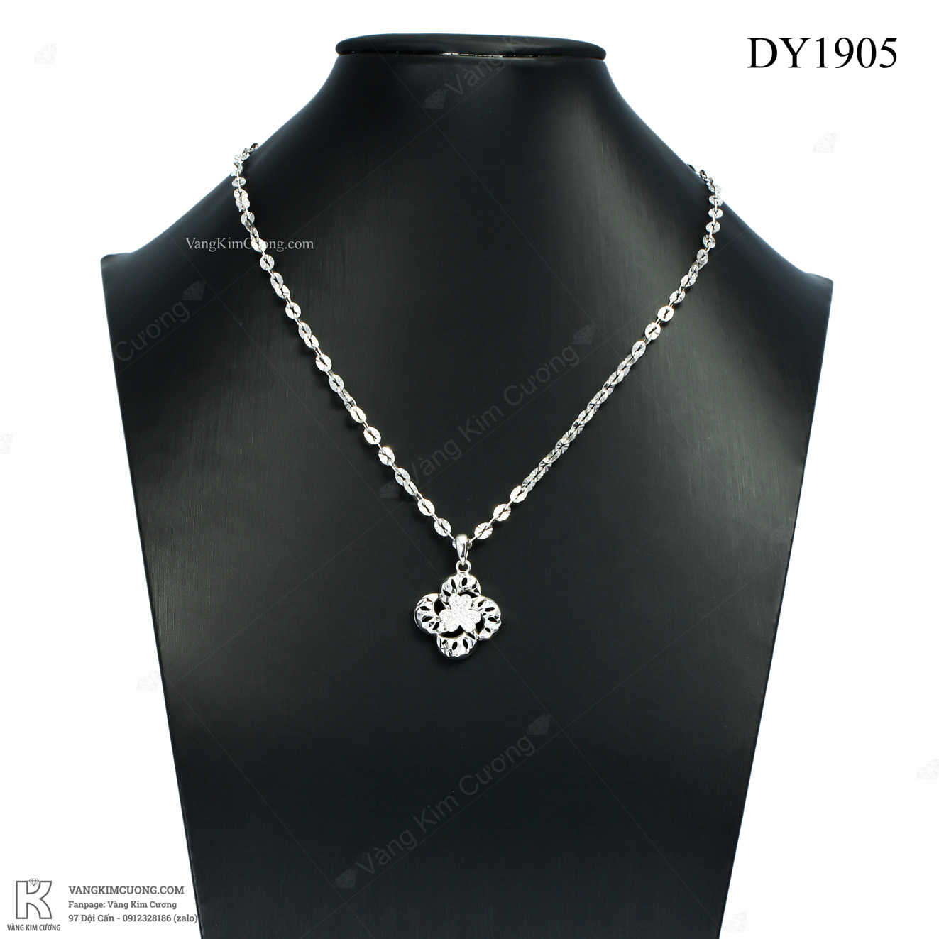 Dây chuyền vàng trắng cao cấp DY1905 vàng cao cấp 18k, nhập khẩu nguyên chiếc tại italy, với kểu dáng dây xoắn tết cùng sư kết hợp với mặt dây hình hoa 3D xinh độc đáo nghệ thuật lạm kim cương nhân tạo làm điểm nhấn giúp gương mặt bạn nổi bật...