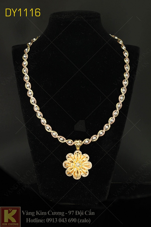 Dây chuyền hoa cúc đại đóa: Hoa cúc là biểu tượng của sự sống, tăng thêm phúc lộc và tình yêu.