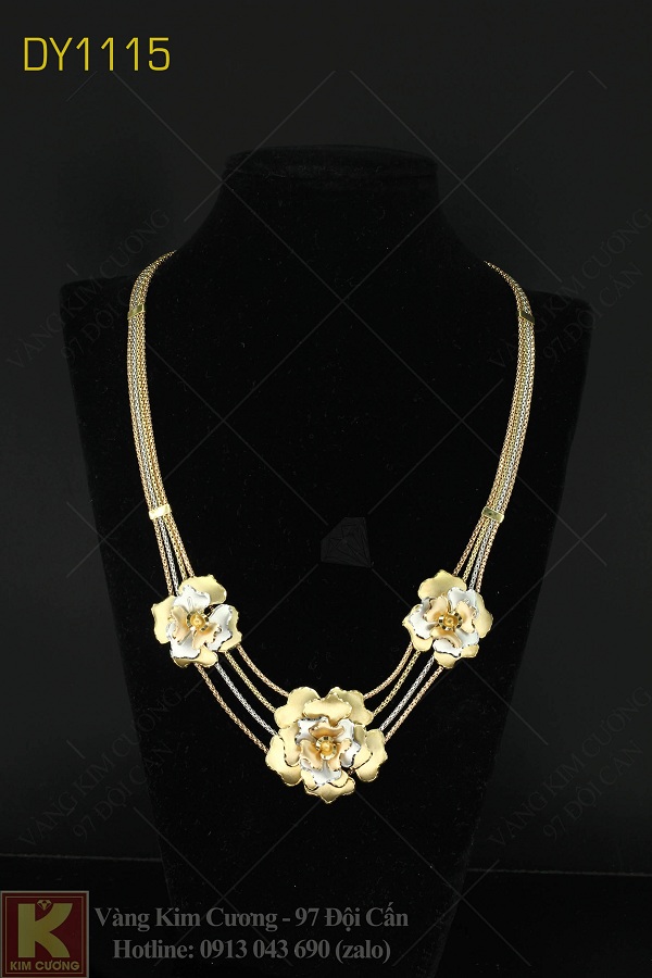 Dây chuyền tam hoa: Mỗi bông hoa mang một màu sắc khác nhau, quy tụ lại một gốc, ngụ ý cho sự đoàn kết, tương trợ, người sở hữu chiếc dây chuyền này không chỉ hạnh phúc, xinh đẹp, yêu kiều mà còn vô cùng mạnh mẽ, thu hút