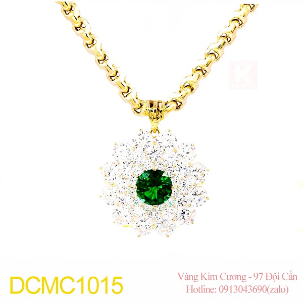 Do đó, dây chuyền 3D ổ đá quý viền kim cương, với cách bài trí vô cùng ấn tượng, sự sắp đặt xem kẽ của các hạt kim cương như những hoa mặt trời , đó là sức mạnh của trời đất, bên cạnh đó, sắc xanh tụ giữa sẽ đem lại may mắn, tài vận, sự thăng tiến trong sự nghiệp cho người sử dụng