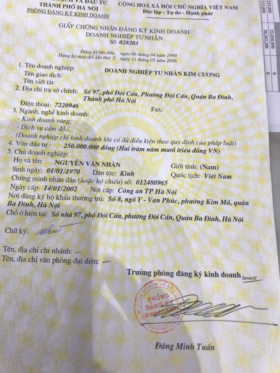 Tên công ty viết bằng tiếng việt: Doanh nghiệp tư nhân Kim Cương