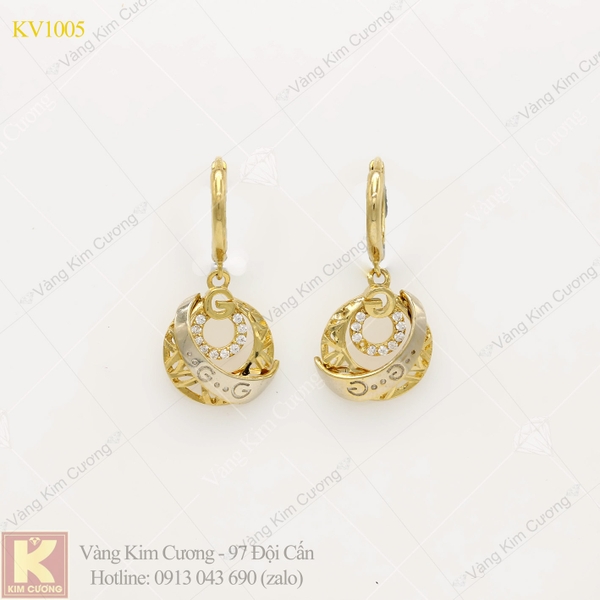 Khuyên tai mã số KV1005 là vàng 18k cao cấp nhập khẩu nguyên chiếc với công nghệ tiến tiến và hiện đại nhất hiện nay . Thiết kế kiểu dáng trẻ trung, lịch sử , mỗi chi tiết luôn được chế tạo một cách tỉ mỉ và cầu kì , mỗi mẫu sẽ được điểm tô bởi những viên kim cương nhân tạo trong suốt hay những họa tiết hoa văn cầu kì và sắc nét , mỗi họa tiết đều mang một phong cách riêng khác biệt .