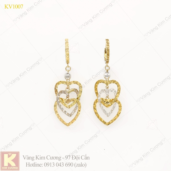 Khuyên tai mã số KV1007 là vàng 18k cao cấp nhập khẩu nguyên chiếc với công nghệ tiến tiến và hiện đại nhất hiện nay . Thiết kế kiểu dáng trẻ trung, lịch sử , mỗi chi tiết luôn được chế tạo một cách tỉ mỉ và cầu kì , mỗi mẫu sẽ được điểm tô bởi những viên kim cương nhân tạo trong suốt hay những họa tiết hoa văn cầu kì và sắc nét , mỗi họa tiết đều mang một phong cách riêng khác biệt .