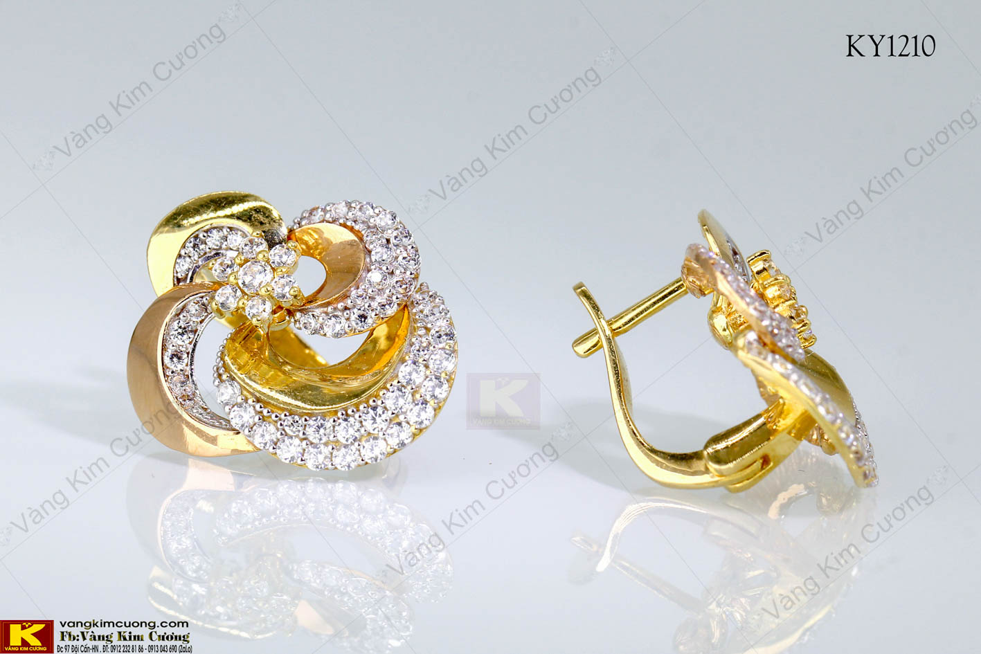 - Bạn không phải đi nhiều nơi để chọn được một đôi khuyên tai như ý vì Vàng Kim Cương có tất cả các mẫu khuyên trên thị trường từ trung bình đến cao cấp với số lượng lớn các mẫu mã đa dạng phù hợp với tài chính của bạn đang được Vàng Kim Cương bày sẵn tại showroom mà không phải chờ đợi đặt hàng, với giá cả cạnh tranh.