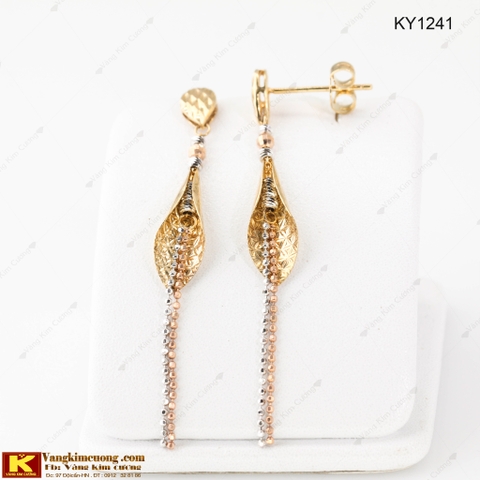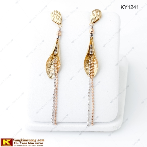 Khuyên tai mã số KY1241 là vàng 18k cao cấp thương hiệu nhập khẩu nguyên chiếc ITALY. Thiết kế trẻ trung, sang trọng, sắc nét từng chi tiết dù là nhỏ nhất . Màu sắc thì đa dạng, tự nhiên. Khuyên tai dài mang phong cách hiện đại cùng sự kết hợp nhưng viên kim cương nhân tạo siêu sáng, kiểu dáng hoa dài sang chảnh mĩ miều với hình sáng lạ mắt của thương hiệu nổi tiếng giản đơn nhưng lại trong sáng và mới mẻ nhưng lại có nét phá cách mới lạ trong kiểu dáng buông vừa phải .Tạo cho sản phẩm đẹp hoàn hảo về thẩm mỹ thời trang trang sức . Làm tăng sức quấn hút với mọi người xung quanh bạn.Người đẹp là phải biết cưng chiều bản thân mình .