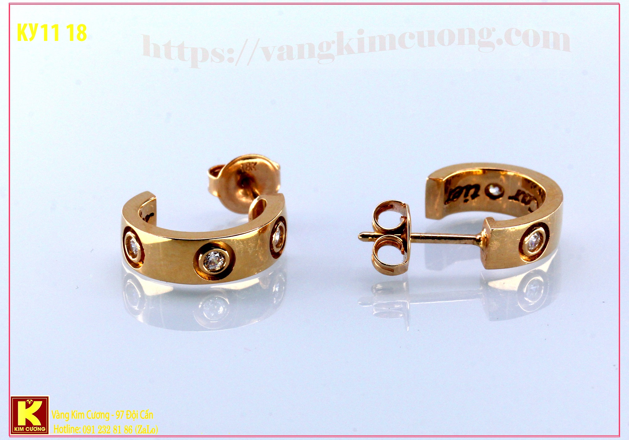 Khuyên tai nữ vàng ý mã KY1118 là vàng cao cấp 18k nhập khẩu nguyên chiếc Italy có giá 6,9 triệu.