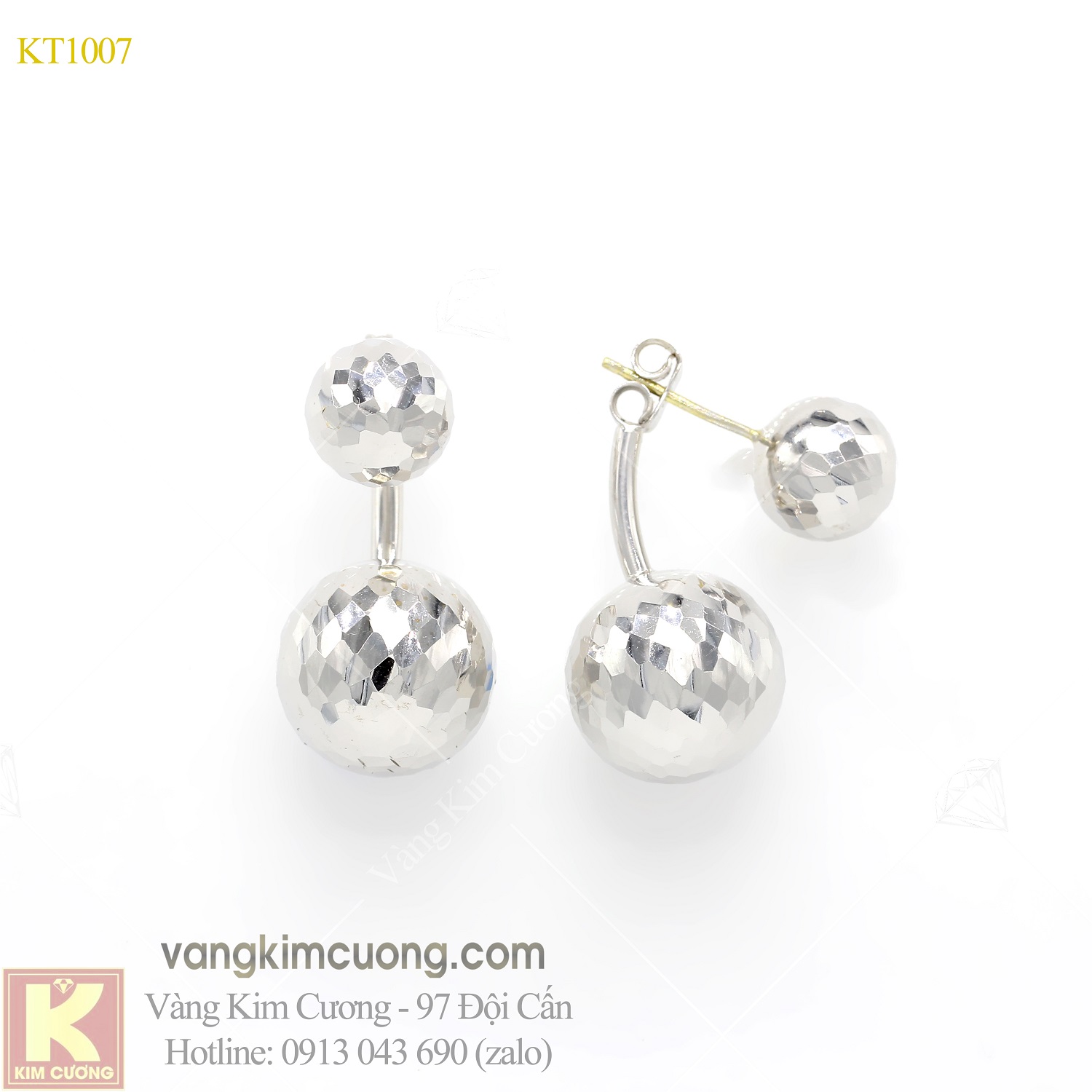 Khuyên KT1007 là vàng trắng cao cấp 18k nhập khẩu nguyên chiếc Italy có giá 7,59 triệu.