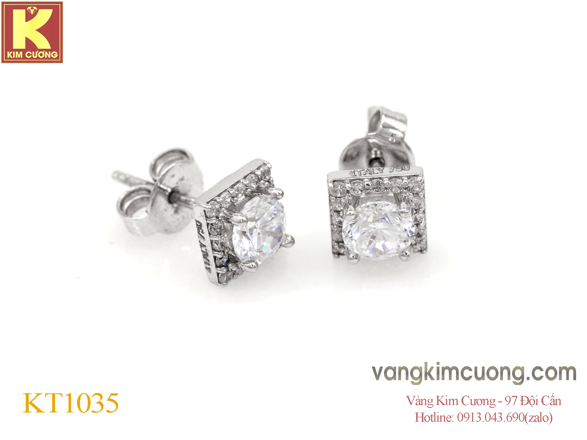 Khuyên KT1035 là vàng trắng cao cấp 18k nhập khẩu nguyên chiếc Italy có giá 3,54 triệu.
