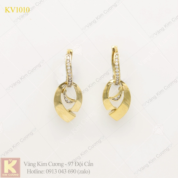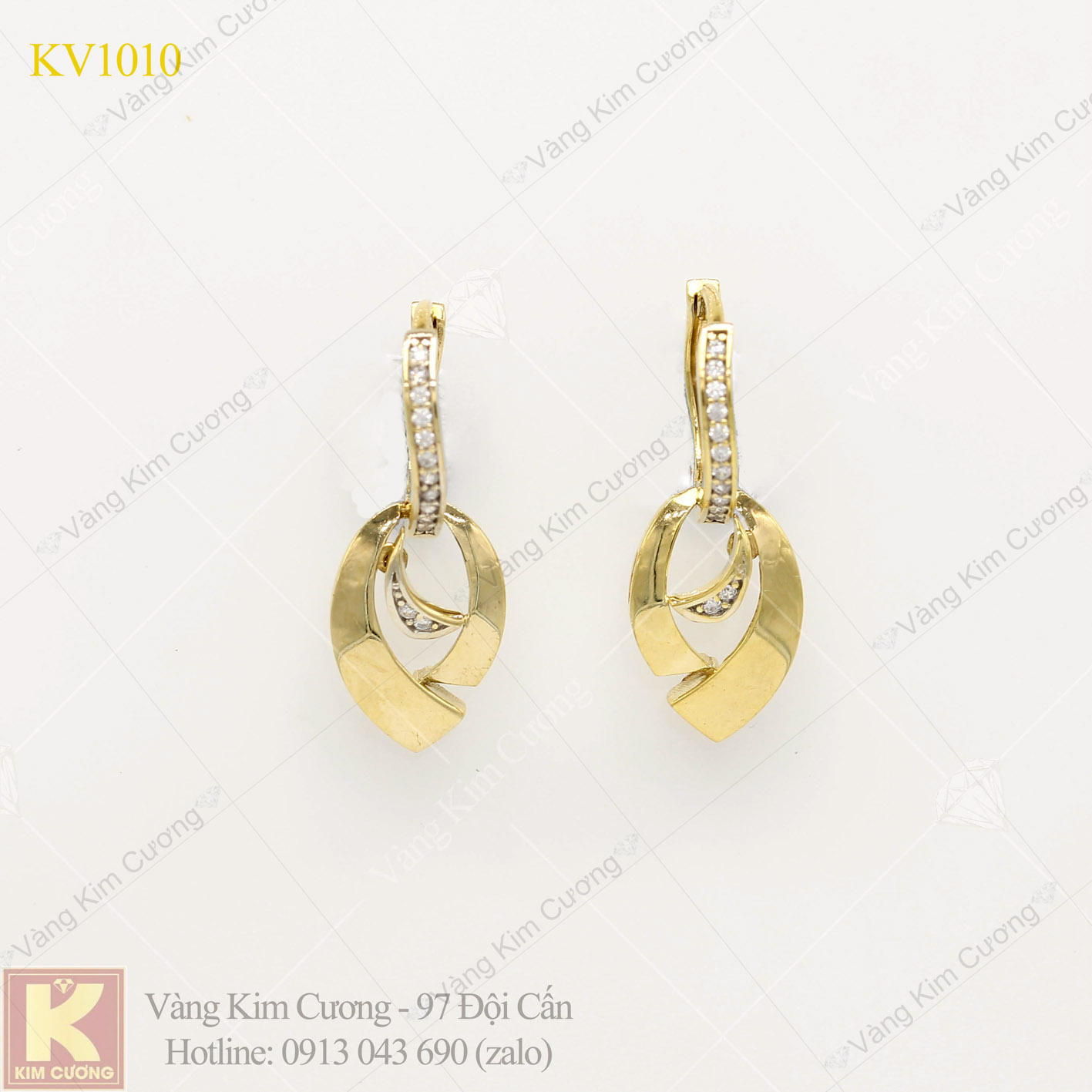 Khuyên tai mã số KV1010 là vàng 16k cao cấp thiết kế trên công nghệ 3D tiến tiến và hiện đại nhất hiện nay . Thiết kế kiểu dáng trẻ trung, lịch sử , mỗi chi tiết luôn được chế tạo một cách tỉ mỉ và cầu kì , mỗi mẫu sẽ được điểm tô bởi những viên kim cương nhân tạo trong suốt hay những họa tiết hoa văn cầu kì và sắc nét , mỗi họa tiết đều mang một phong cách riêng khác biệt .