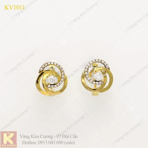 Khuyên tai mã số KV1011 là vàng 16k cao cấp thiết kế trên công nghệ 3D tiến tiến và hiện đại nhất hiện nay . Thiết kế kiểu dáng trẻ trung, lịch sử , mỗi chi tiết luôn được chế tạo một cách tỉ mỉ và cầu kì , mỗi mẫu sẽ được điểm tô bởi những viên kim cương nhân tạo trong suốt hay những họa tiết hoa văn cầu kì và sắc nét , mỗi họa tiết đều mang một phong cách riêng khác biệt .