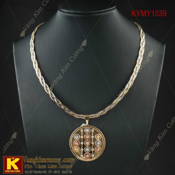 Kiềng cổ nữ vàng cao cấp KYMY1539 vàng cao cấp 18k, nhập khẩu nguyên chiếc tại italy. Kiềng có hình xoắn tết bốn đan sen lẫn nhau làm nổi bật nên vẻ đẹp của chiếc kiềng cổ. Mặt kiềng hình tròn bi độc đáo, sắc nét tinh tế với sự kết hợp của vàng ba màu nổi bật hơn và thu hụt mọi ánh nhìn xung quanh.