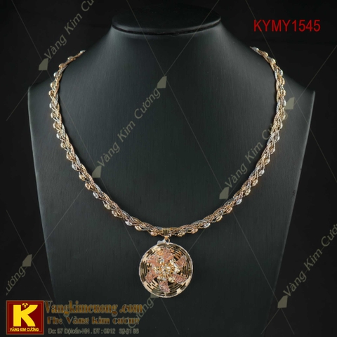 Kiềng cổ nữ vàng cao cấp KYMY1545 vàng cao cấp 18k, nhập khẩu nguyên chiếc tại italy. Kiềng có hình xoắn tết đan sen lẫn nhau với hại châu bi làm nổi bật nên vẻ đẹp kiêu sang của chiếc kiềng cổ. Mặt kiềng hoa xoay phay 3D tinh tế, sắc nét tinh tế với sự kết hợp của vàng ba màu nổi bật hơn và thu hụt mọi ánh nhìn xung quanh.
