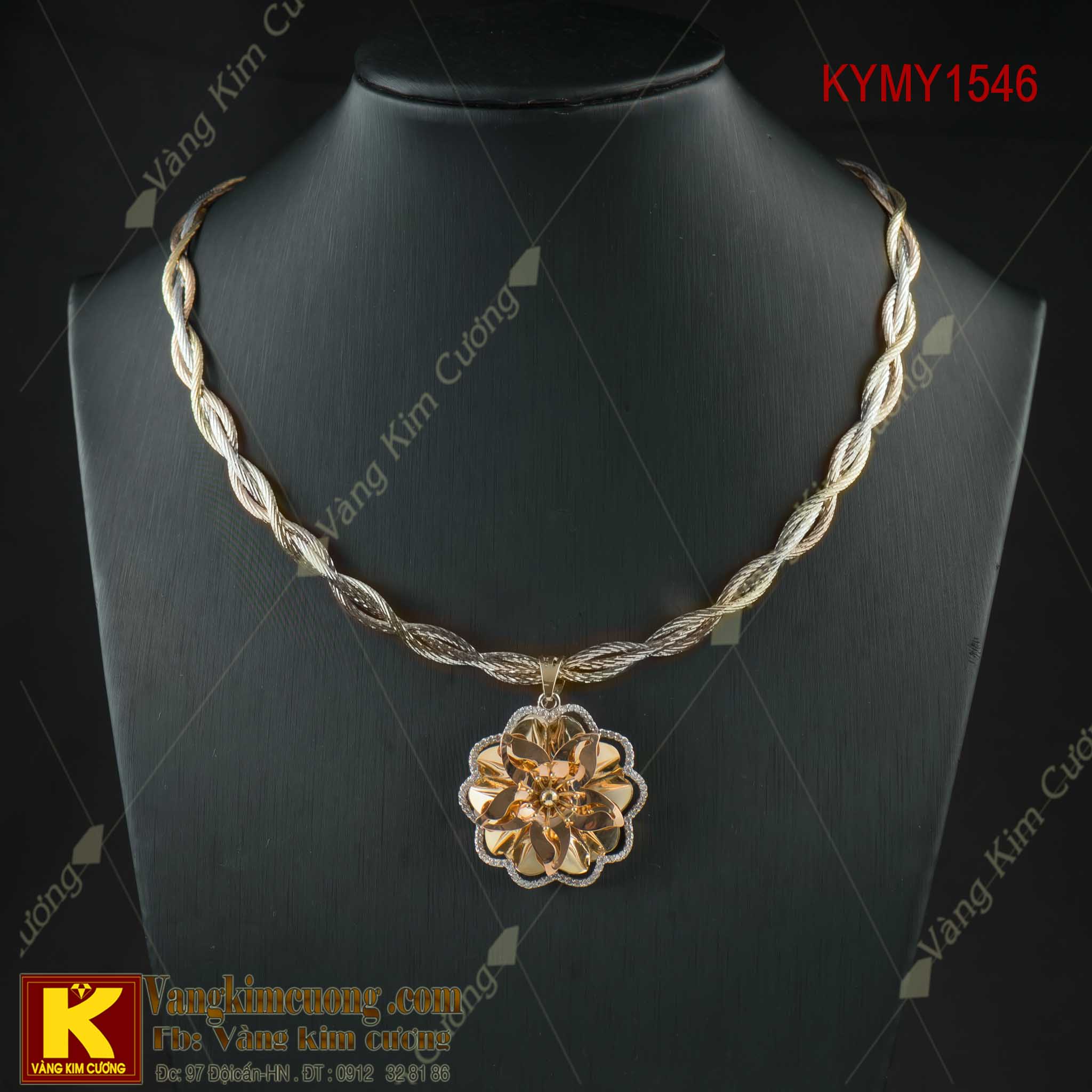 Kiềng cổ nữ vàng cao cấp KYMY1546 vàng cao cấp 18k, nhập khẩu nguyên chiếc tại italy. Kiềng có hình xoắn tết hình vòng, độc đáo lạ đẹp. Mặt kiềng hoa xoay phay 3D tinh tế, sắc nét tinh tế với sự kết hợp của vàng ba màu nổi bật hơn và thu hụt mọi ánh nhìn xung quanh.
