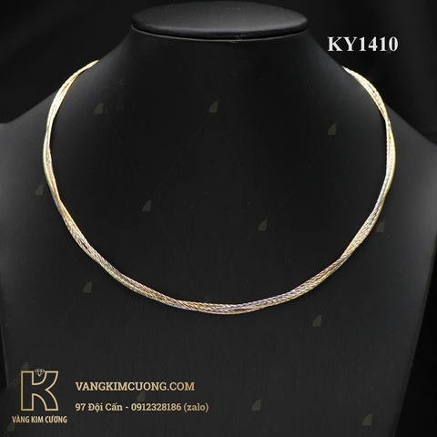 Kiềng nữ vàng 18k mã KY1410 là vàng cao cấp 18k nhập khẩu nguyên chiếc Italy, được thiết kế với kiểu dáng thanh tao nhẹ nhàng , sự kết hợp màu sắc rất sáng và đa dạng bắt mắt càng tôn lên được sự tinh tế nhã nhặn của màu sắc, sự tinh tế của mỗi thiết kế với những hoạ tiết trong mỗi mắt xích liên kết với nhau rất tỉ mỉ và sắc nét
