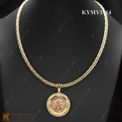 Kiềng cổ nữ vàng trắng cao cấp KYMY1474 vàng cao cấp 18k, nhập khẩu nguyên chiếc tại italy, kiềng cổ là sự kết hợp độc đáo giưa những dây tết đan sen vào nhau cùng mặt kiềng hình tượng Versac tăng sự nổi...