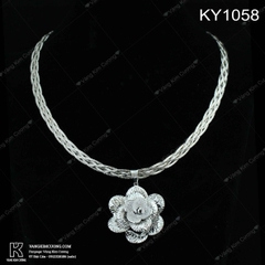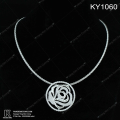 Kiềng cổ nữ vàng cao cấp KY1056 vàng trắng 18k, nhập khẩu nguyên chiếc tại italy. Kiềng vàng trắng cao cấp 18k có sự kết hợp liên kết kiềng xoắn tết, điểm nhấn là bông hoa hồng phay 3D nghện thuật làm thu hút cũng...