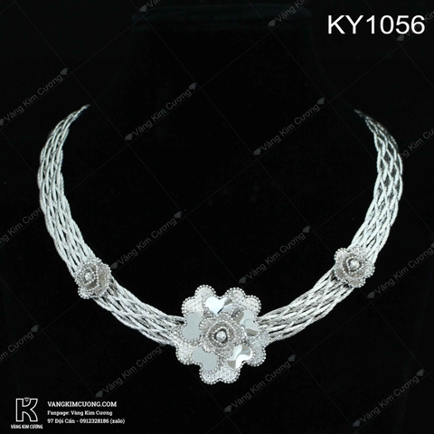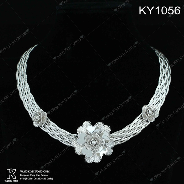 ...Kiềng cổ nữ vàng cao cấp KY1056 vàng trắng 18k, nhập khẩu nguyên chiếc tại italy. Kiềng vàng trắng cao cấp 18k có sự kết hợp liên kết kiềng xoắn tết, điểm nhấn là bông hoa hồng phay 3D nghện thuật làm thu hút cũng như tạo nên vẻ đẹp kiêu sa.