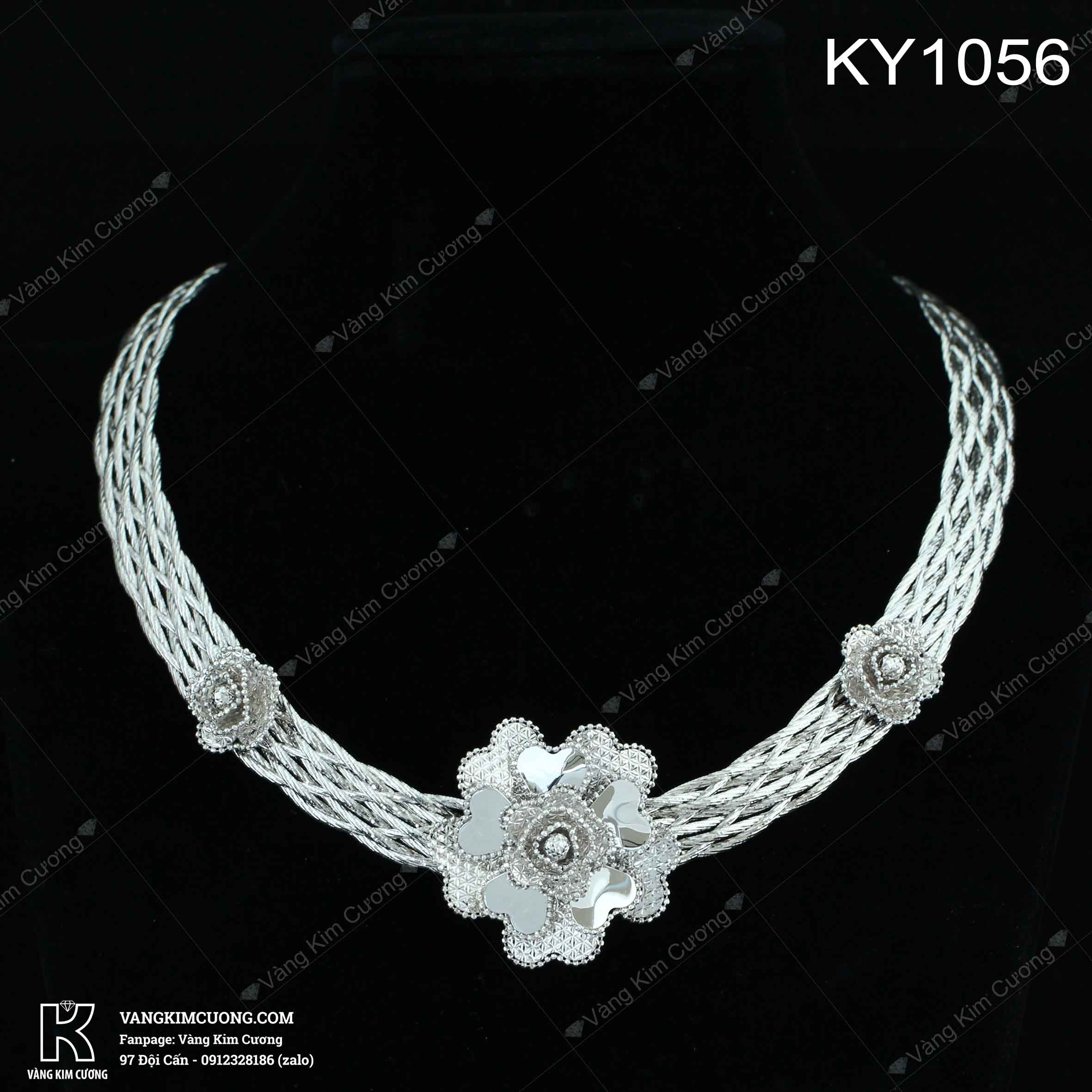 Kiềng cổ nữ vàng cao cấp KY1056 vàng trắng 18k, nhập khẩu nguyên chiếc tại italy. Kiềng vàng trắng cao cấp 18k có sự kết hợp liên kết kiềng xoắn tết, điểm nhấn là bông hoa hồng phay 3D nghện thuật làm thu hút cũng như tạo nên vẻ đẹp kiêu sa.