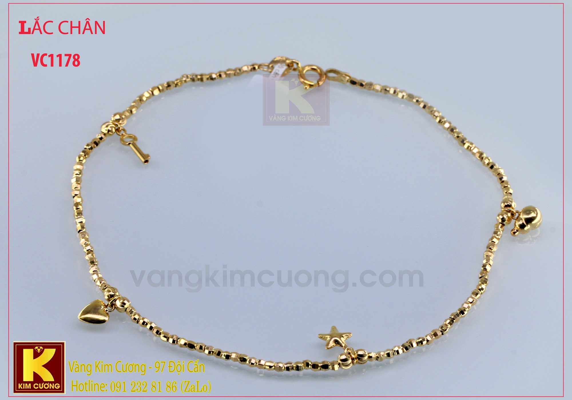 Sản phẩm lắc chân nữ vàng VC1178 mang phong cách trẻ trung , theo xu hướng hiện đại . Tạo cho sản phẩm đẹp hoàn hảo về thẩm mỹ thời trang trang sức . Làm tăng sức quấn hút với mọi người xung quanh bạn .Người đẹp là phải biết cưng chiều bản thân mình .