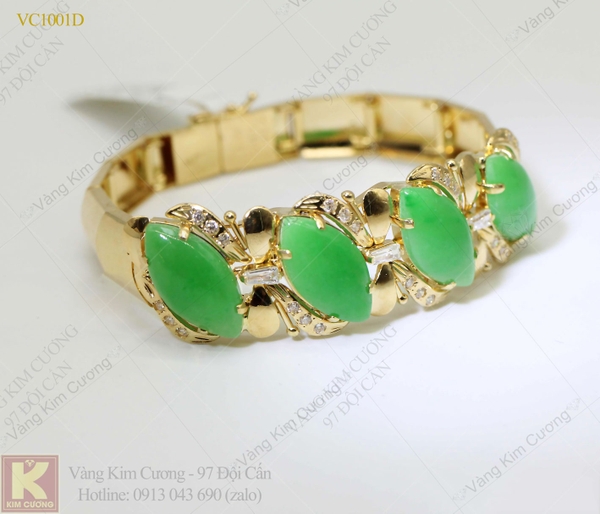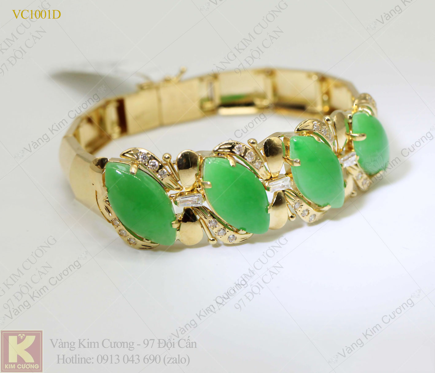 Lắc tay đá quý VC1001D được kết hợp từ vàng 16k và mặt đá Emerald thiên nhiên mang lại vẻ nữ tính, dịu dàng. Đá Emerald từ xa xưa được các vị vua chúa rất ưa chuộng, luôn mang bên mình để cầu may mắn, suôn sẻ.